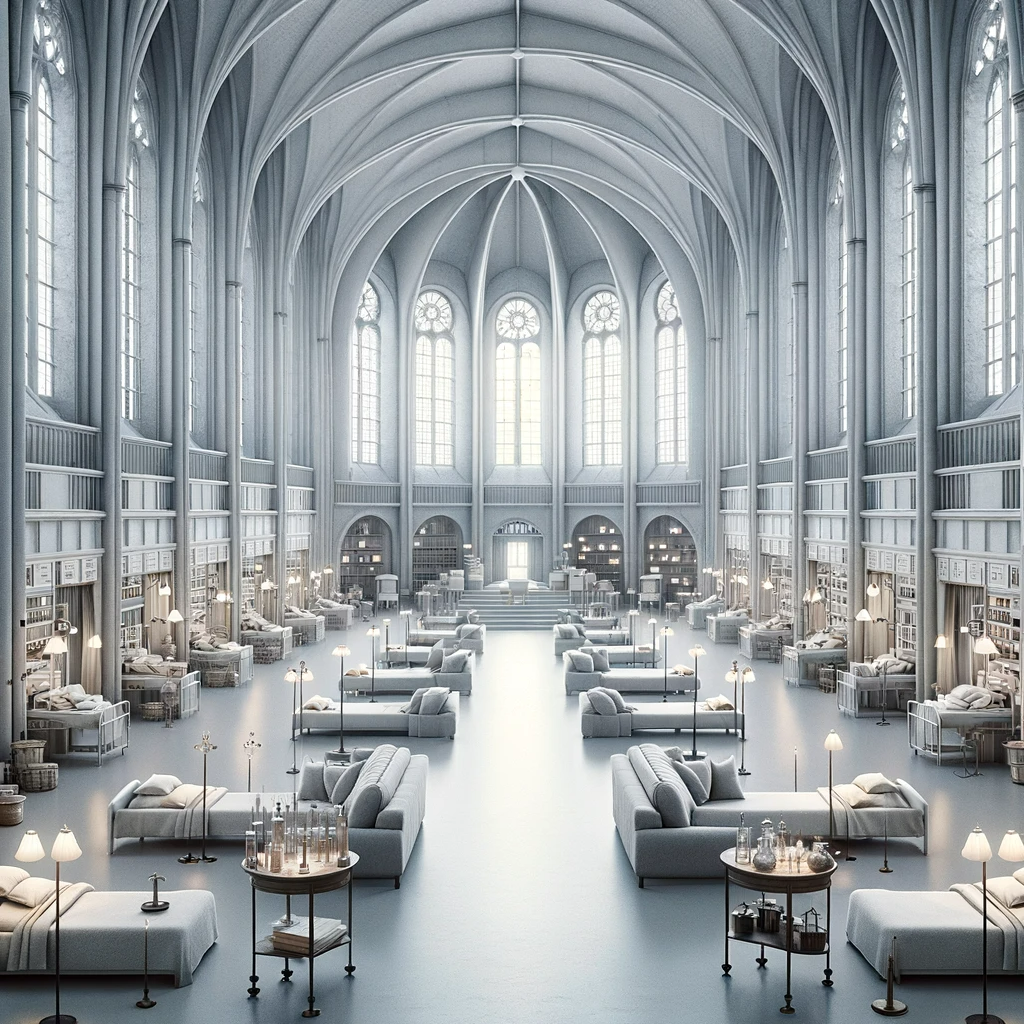 Все это помещение стерильно-белое, здесь одинаковые койки, застеляные белоснежным бельем, у каждой кровати стоит тумбочка и магическая лампа на тот случай, когда общий свет под высоким потолком гаснет после отбоя.
